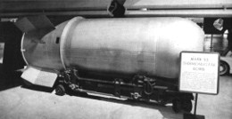 The bomb was produced in both Y1 (“Clean”) and Y2 (“Dirty”) versions. The difference between the two is that the “clean” version was a two-stage weapon, with an Oralloy (enriched uranium, no plutonium) fission primary used to drive a Lithium-6 deuteride fusion secondary. This weapon would have had an outer jacket constructed of lead or titanium. The “dirty” version, by contrast, would have had an outer jacket constructed of U-238 (depleted uranium), which, although normally non-fissile, would be driven to a fission reaction by the pressure and neutron flux generated by the fusion secondary, making this version a “three-stage” weapon. While there is only one reported yield for the weapon (the aforementioned 9 Mt), the addition of the U-238 casing in the Y2 variant would have resulted in a significantly higher yield than the Y1. Although it had a mechanical firing safety, the bomb originally lacked modern Permissive Action Link safety features. These were incorporated during life-extension upgrades in the late 1980s.